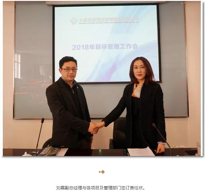 大连金泉酒店管理服务有限公司于3月9日下午召开了2018年目标管理工作会议。公司自2015年开始试运行目标管理,至2017年目标管理已经全面的深入、细化至各项目的服务
